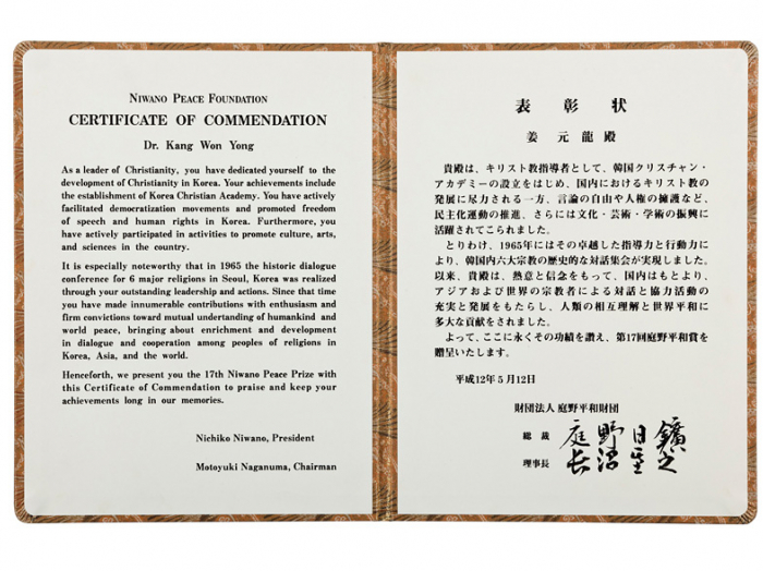 부시대통령에게 한반도 평화 건의서 보낸 강원용 평화포럼 이사장