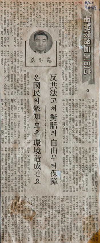 남북대화에 붙인다 작성일 : 2011.06.29 조회수 : 12 공유하기 페이스북으로 공유하기 페이스북으로 공유하기 URL 하루속히 반공법을 수정하여 이북과 대화하기 이전에 우리끼리 자유롭게 대화할 수 있는 분위기를 조성해야 한다. 각계각층에 뿌리를 뻗고 있는 지도층의 여론을 노출시켜야 하고 그 중지를 건설적으로 조직화하여 민족의 총화를 이루어야 한다. 공산주의자는 동포도 아니고 인간도 아니라는 의식도, 소박한 감상주의도 문제다. 대화도 하나의 대결이고 무력적보다 더 힘든 전쟁이다. 관련일시 1971.08.25 노트 동아일보 태그 신문기사 이전 한신대 신입생을 위한 내일&리더십 캠프 다음 1차 멘토 포럼 목록으로